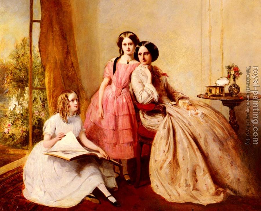 A Portrait Of Two Girls With Their Governess by Abraham Solomon