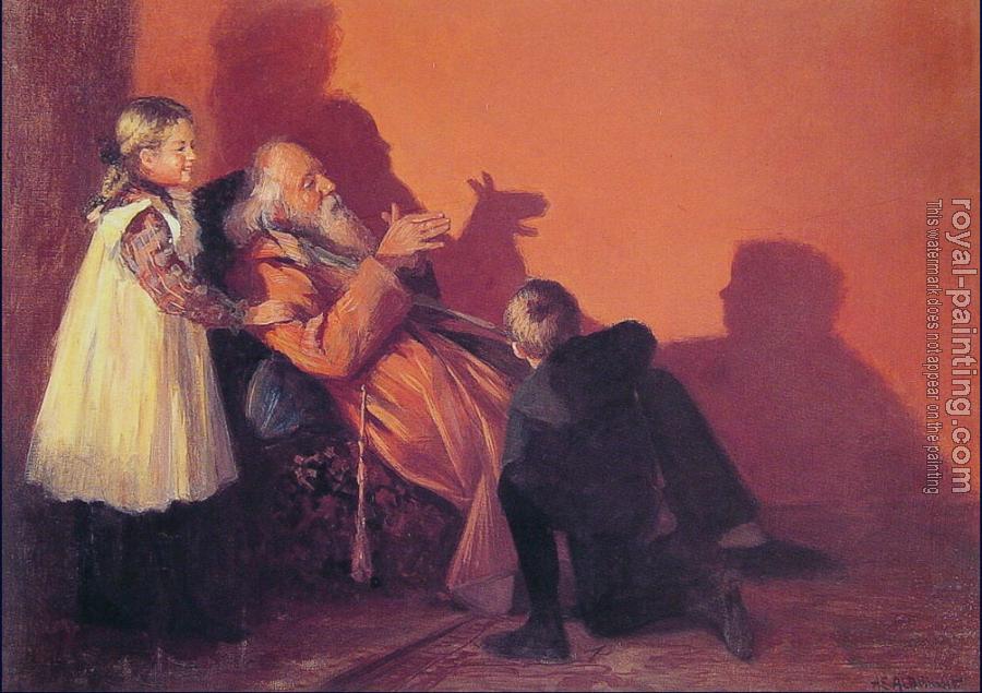 * Hand-painted Adam Emory Albright Oil Painting Reproduction : Hand Shadows