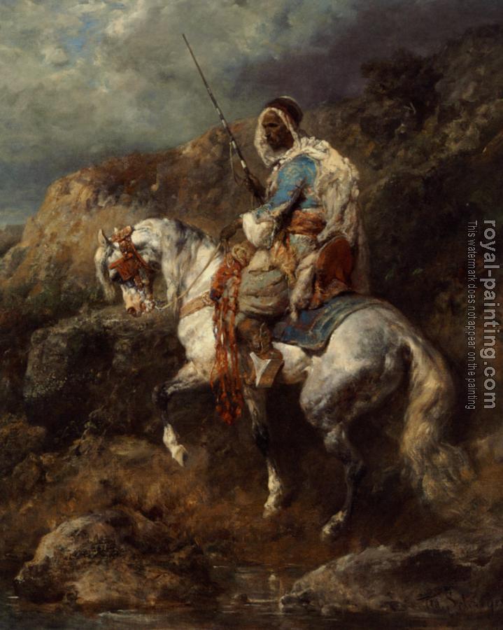 * Hand-painted Adolf Schreyer Oil Painting Reproduction : Arabischer Reiter an einter Tranke