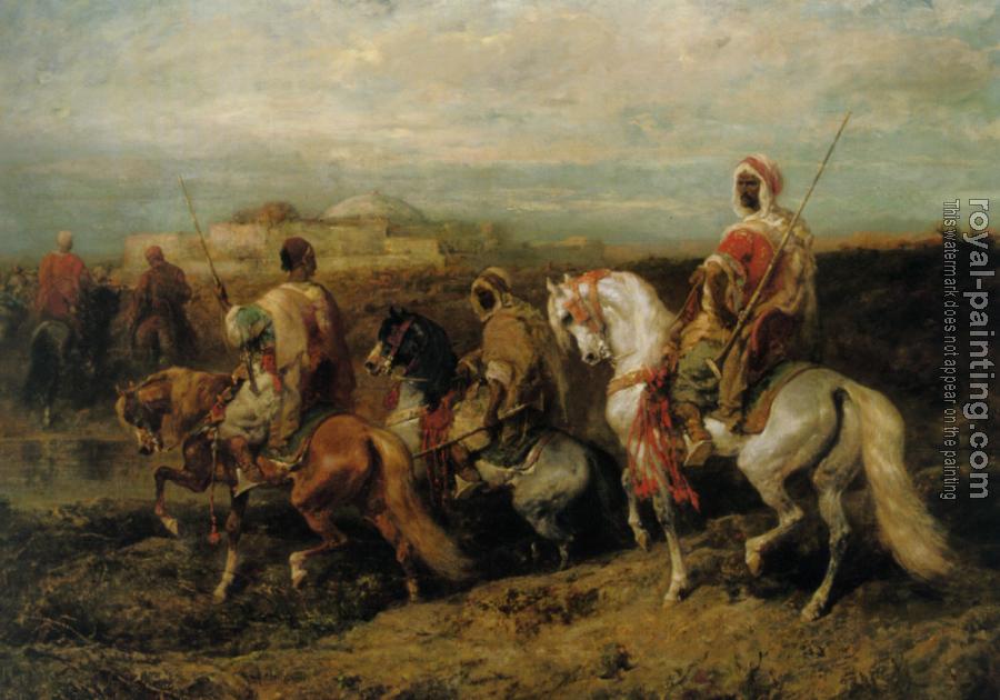 * Hand-painted Adolf Schreyer Oil Painting Reproduction : Bedouins Approaching the City