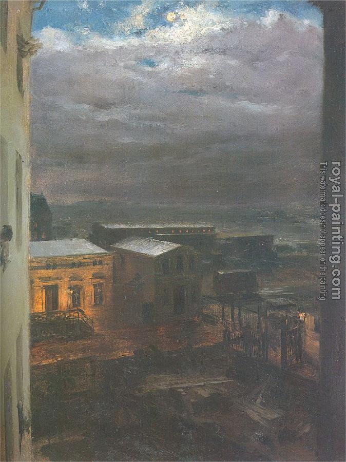 * Hand-painted Adolph Von Menzel Oil Painting Reproduction : The Anhalter Railway Station by Moonlight