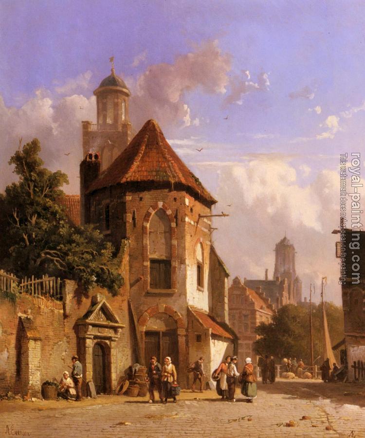 * Hand-painted Adrianus Eversen Oil Painting Reproduction : View Of A Dutch Street