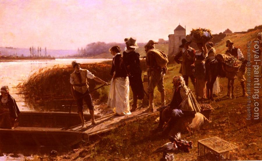 * Hand-painted Adrien Moreau Oil Painting Reproduction : Le Bac