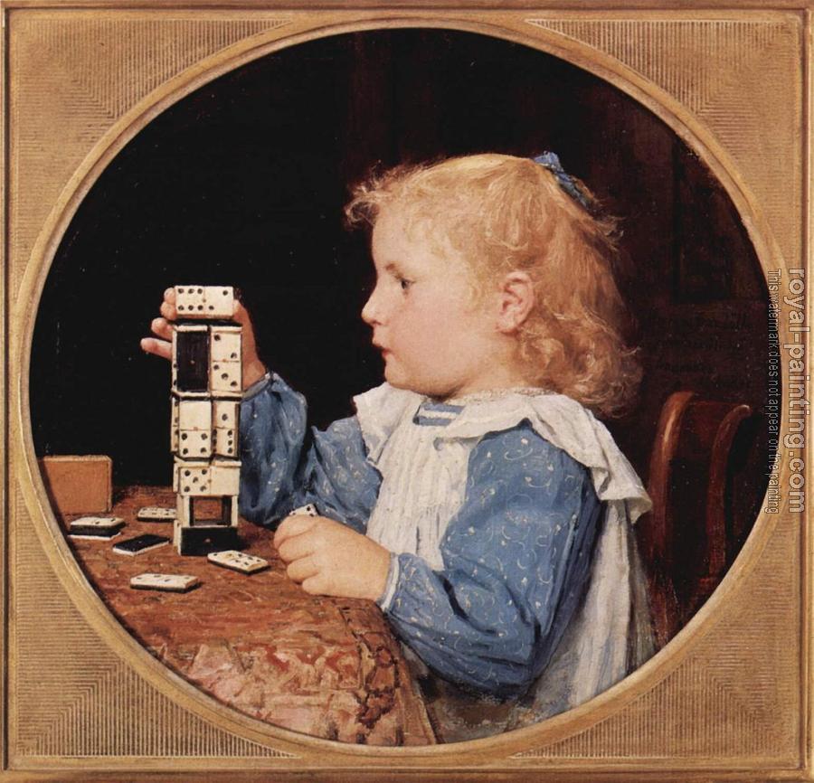 Das madchen mit den dominosteinen, tondo by Albert Anker
