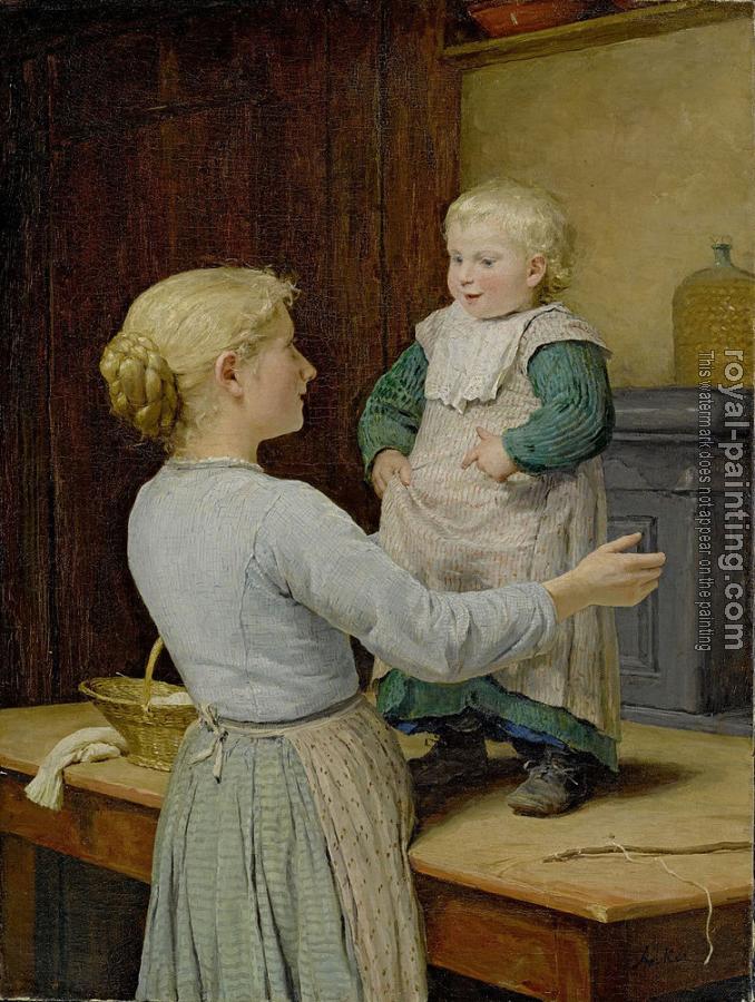 * Hand-painted Albert Anker Oil Painting Reproduction : Die altere schwester