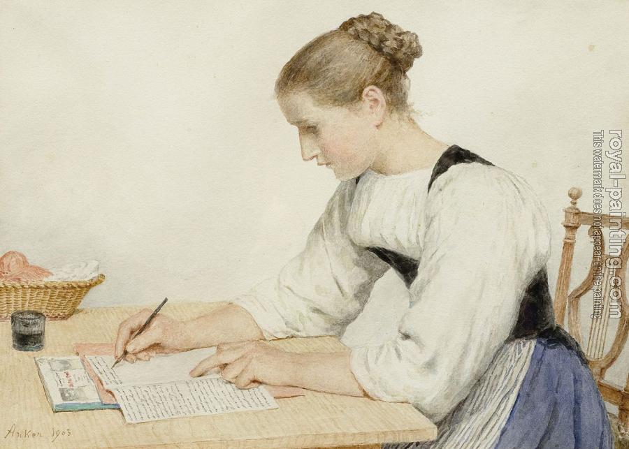 * Hand-painted Albert Anker Oil Painting Reproduction : Junge frau einen brief schreibend