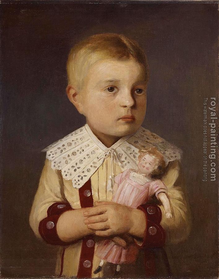* Hand-painted Albert Anker Oil Painting Reproduction : Kind mit puppe