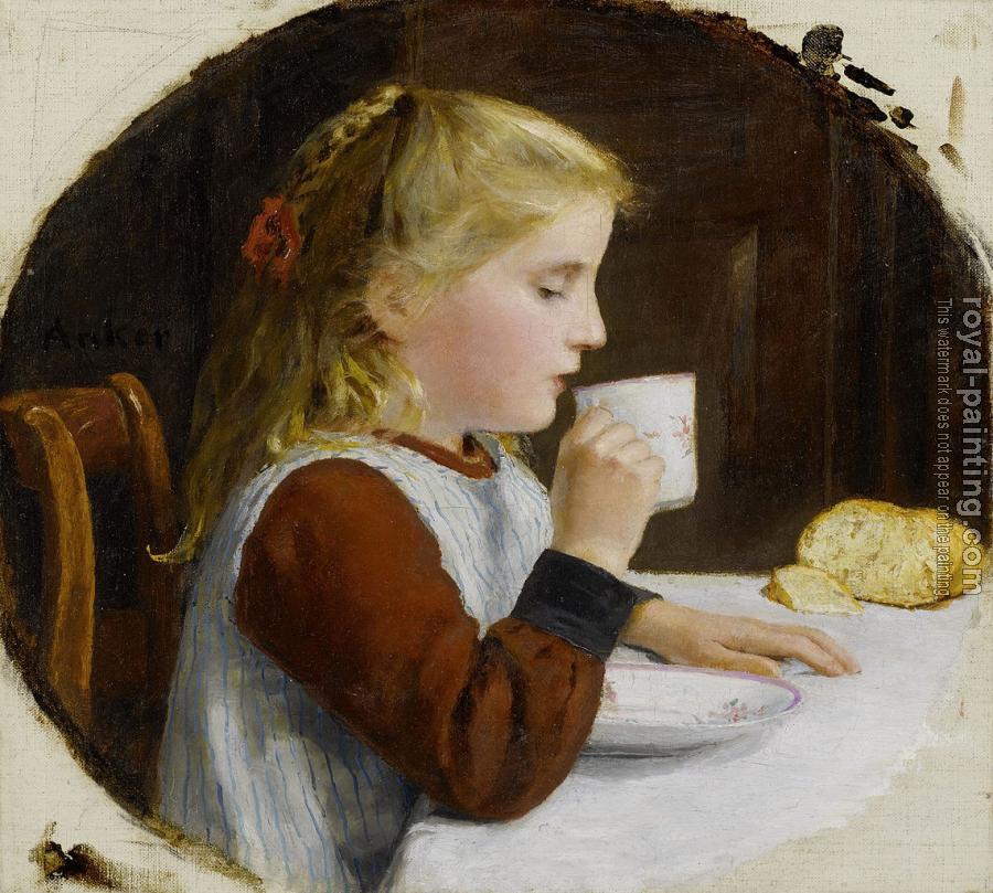 * Hand-painted Albert Anker Oil Painting Reproduction : Madchen, kaffee trinkend