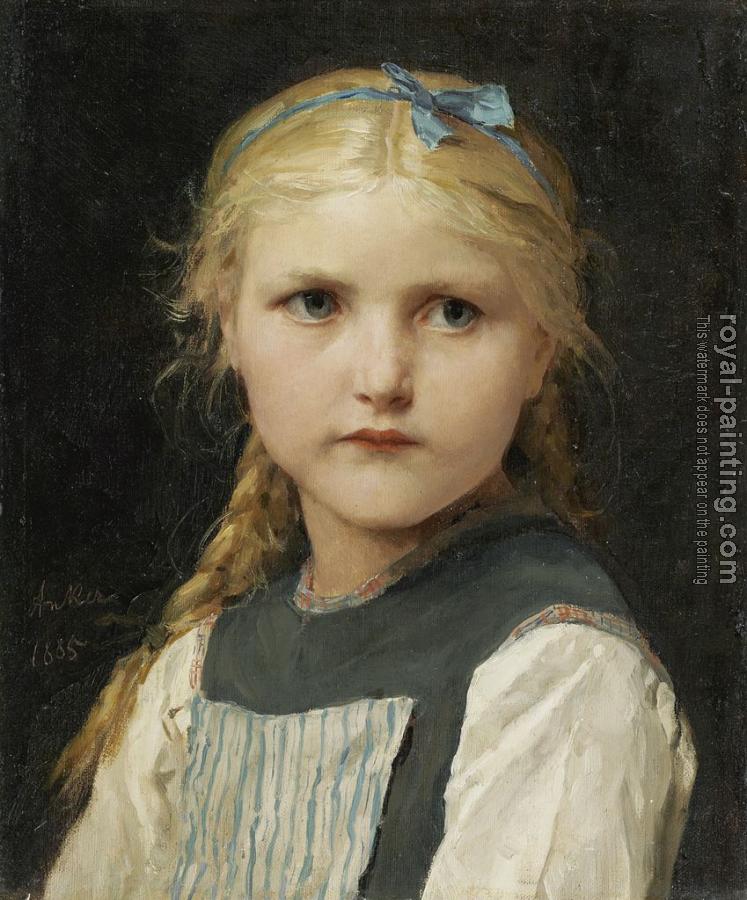 * Hand-painted Albert Anker Oil Painting Reproduction : Portrait of a girl