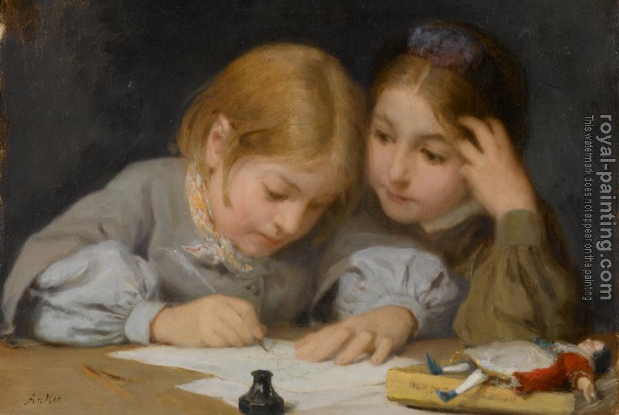 * Hand-painted Albert Anker Oil Painting Reproduction : Schreibunterricht