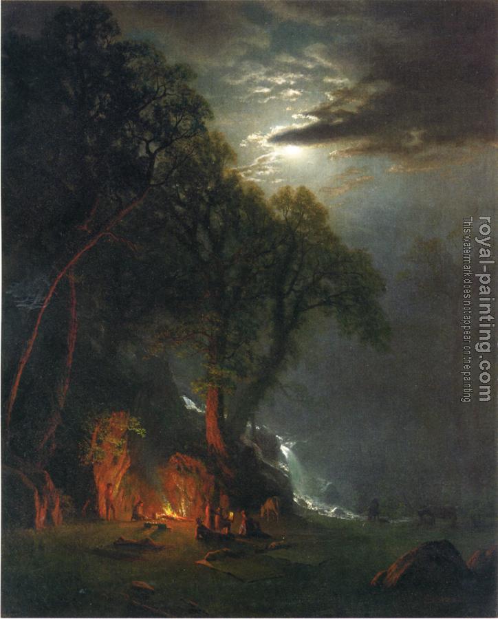 * Hand-painted Albert Bierstadt Oil Painting Reproduction : Campfire Site Yosemite