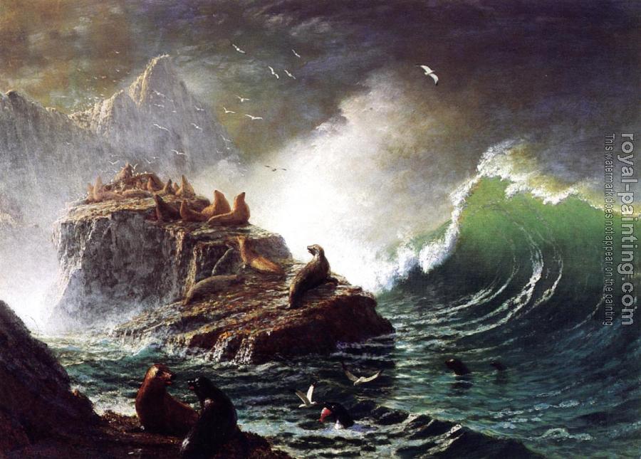 Seals on the Rocks Farallon Islands by Albert Bierstadt