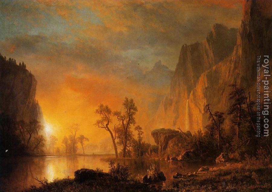 * Hand-painted Albert Bierstadt Oil Painting Reproduction : Sunset in the Rockies