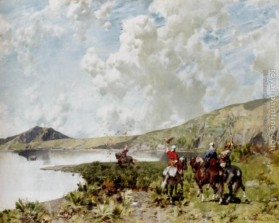 * Hand-painted Alberto Pasini Oil Painting Reproduction : The Falconers