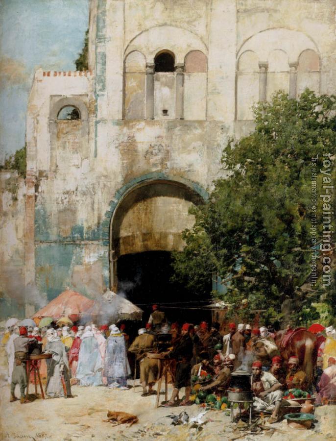 * Hand-painted Alberto Pasini Oil Painting Reproduction : market Day Constantinople