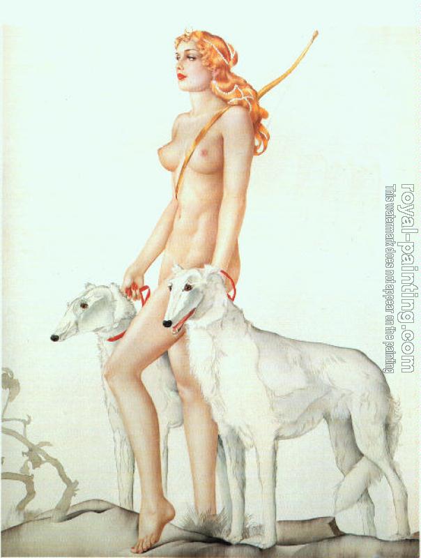 * Hand-painted Alberto Vargas Oil Painting Reproduction : Diana The Huntress