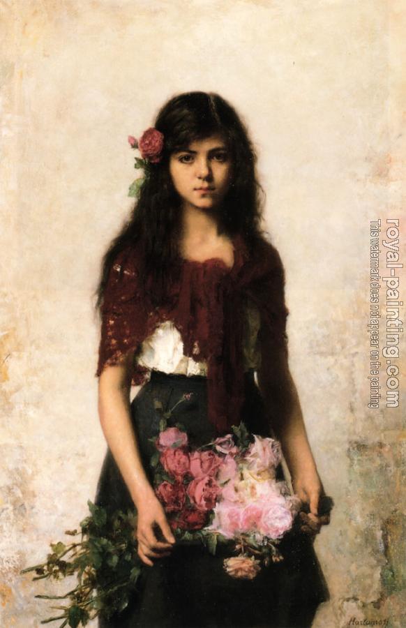 * Hand-painted Alexei Alexeievich Harlamoff Oil Painting Reproduction : The Flower Seller