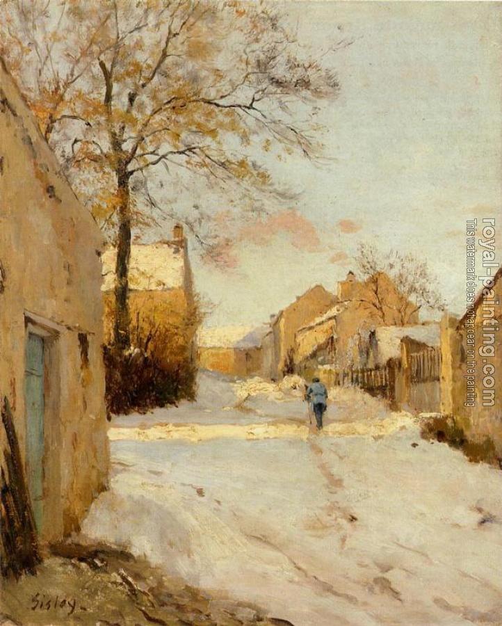 * Hand-painted Alfred Sisley Oil Painting Reproduction : A Village Street in Winter