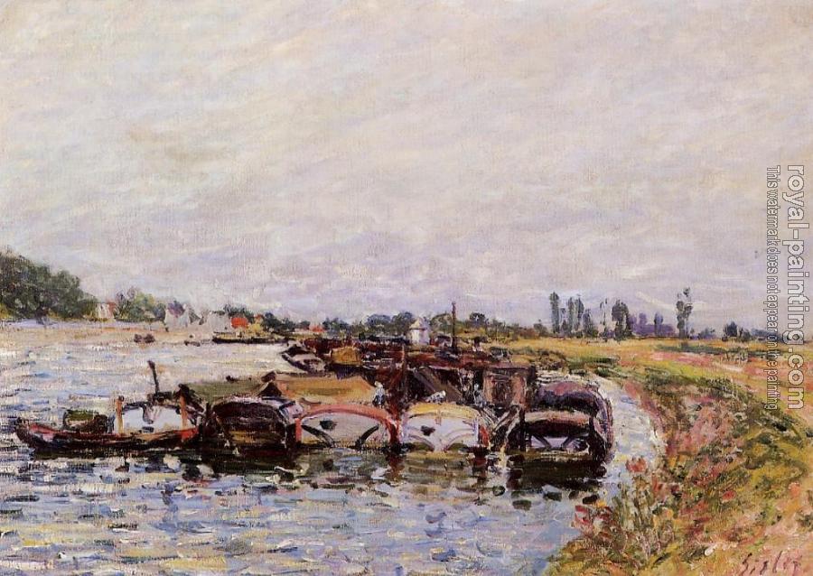 landscape painting, 48008-Sisley, Alfred-Barge Garage at Saint-Mammes.jpg