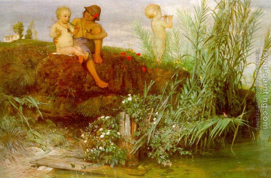 * Hand-painted Amold Bocklin Oil Painting Reproduction : Children Carving May Flutes