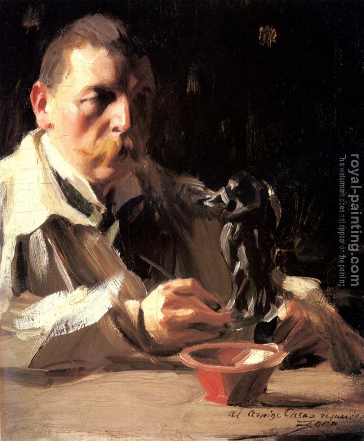 Anders Zorn's oil painting. , 30898-Zorn, Anders-Self Portrait with Faun and Nymph