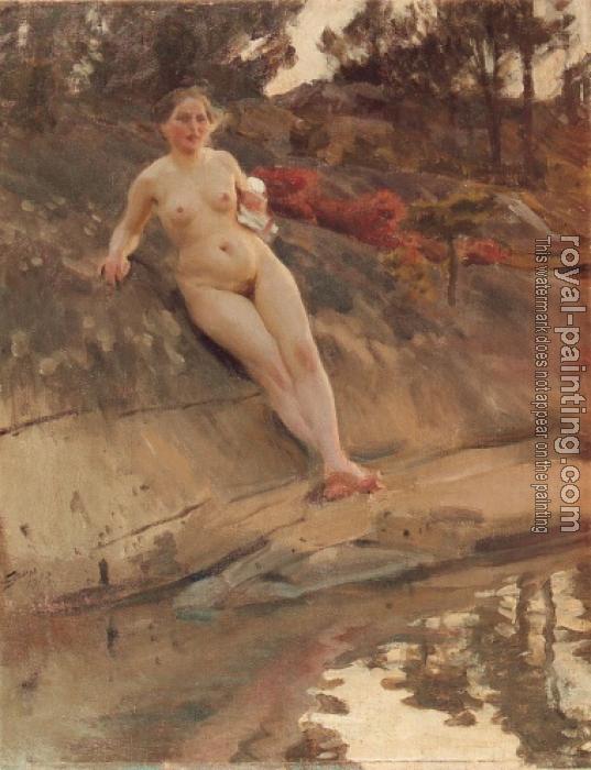 Anders Zorn's oil painting. , 30905-Zorn, Anders-Sunbathing girl