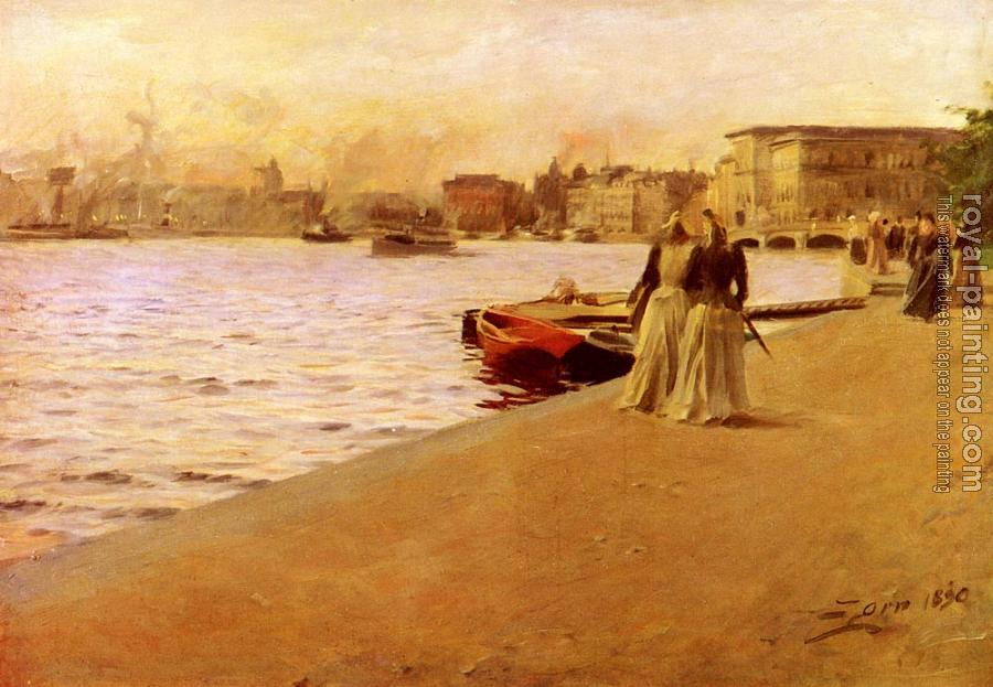 * Hand-painted Anders Zorn Oil Painting Reproduction : Utsikt Fran Skeppsholmskajen