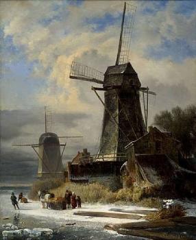 Andreas Schelfhout (February 16, 1787, The Hague - April 19, 1870, The Hague) was a Dutch painter, etcher and lithographer, known for his landscape paintings. He belongs to the Romantic movement. His Dutch winter scenes and frozen canals with skaters were already famous during his lifetime. He became one of the most influential Dutch landscape artists of his century.