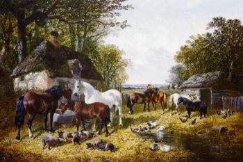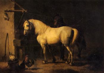 Stubbs George Two Bay Mares And A Grey Pony In A Landscape