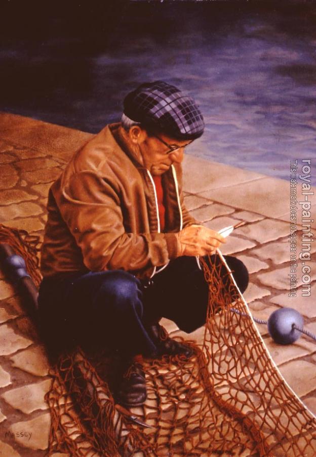 * Hand-painted Ann James Massey Oil Painting Reproduction : Fisherman Mending His Net