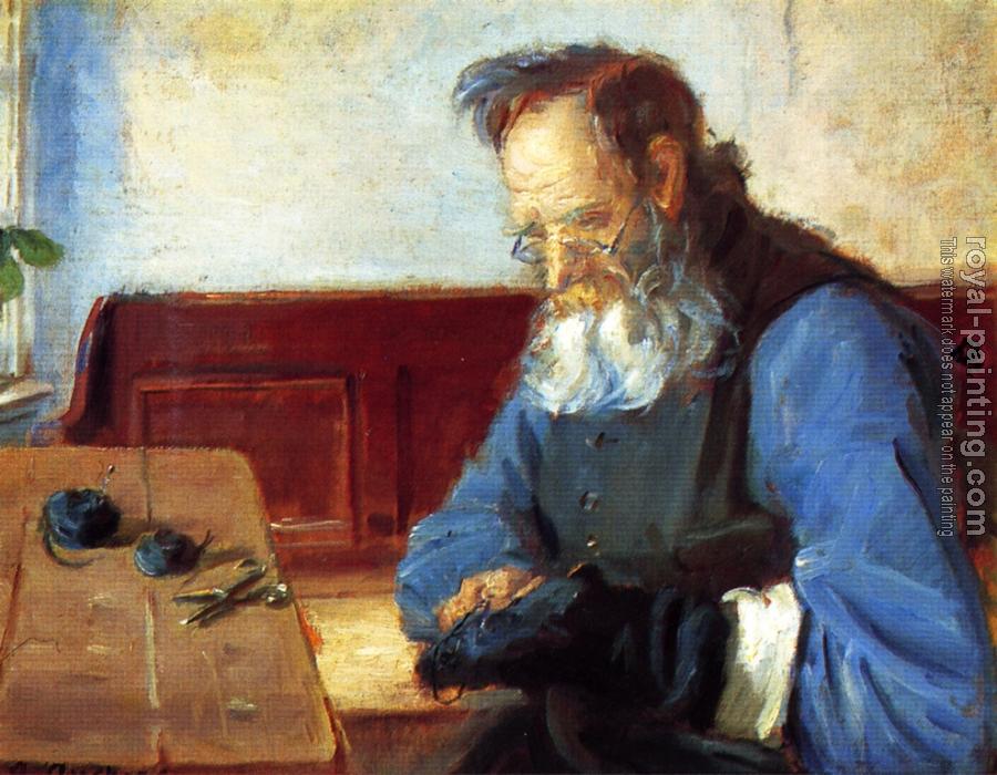 * Hand-painted Anna Ancher Oil Painting Reproduction : A man mending socks