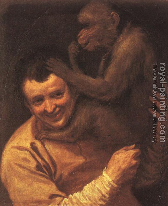 * Hand-painted Annibale Carracci Oil Painting Reproduction : A Man with a Monkey