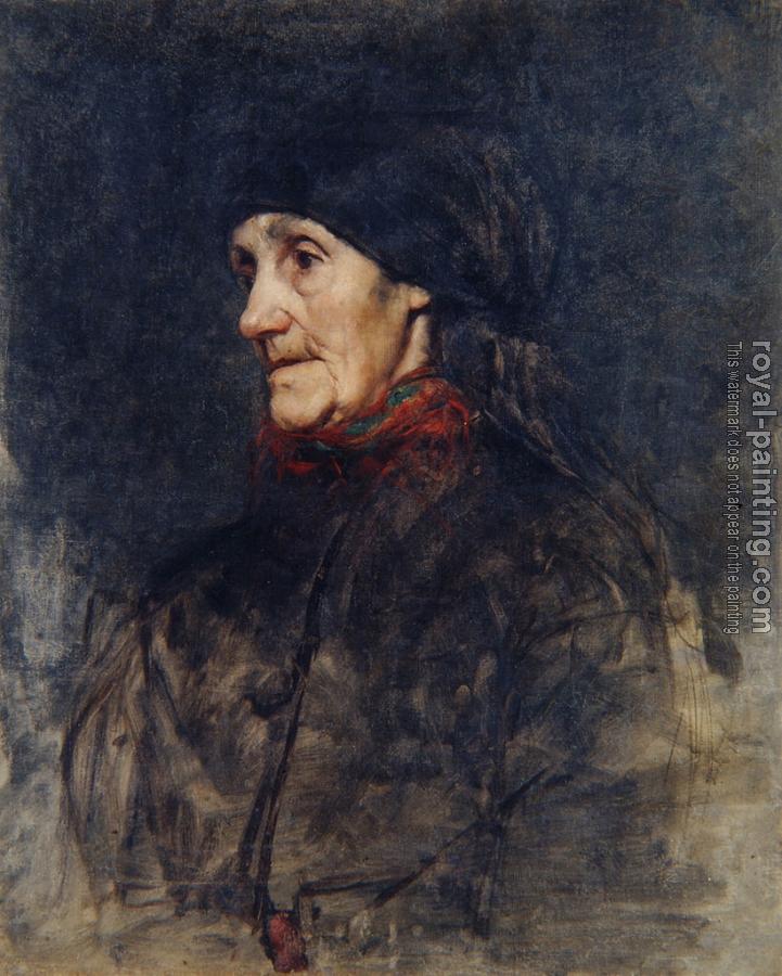 * Hand-painted Anton Azbe Oil Painting Reproduction : Old woman with a headscarf