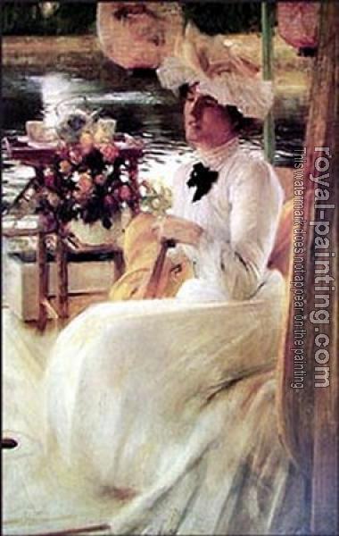 * Hand-painted Arthur Hacker Oil Painting Reproduction : On the Houseboat