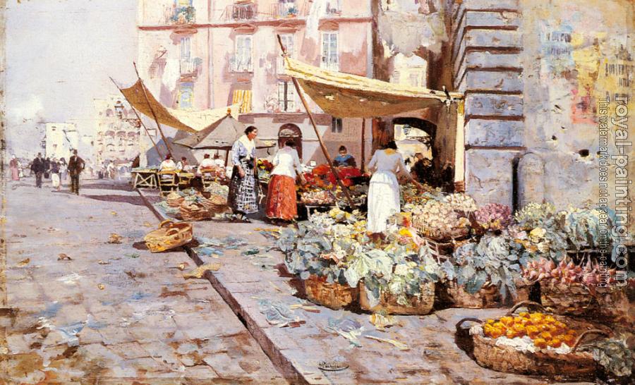 * Hand-painted Attilio Pratella Oil Painting Reproduction : The Marketplace