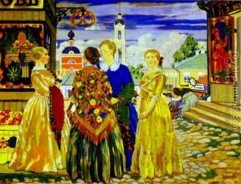 * Hand-painted Boris Kustodiev Oil Painting Reproduction : Merchant Wives