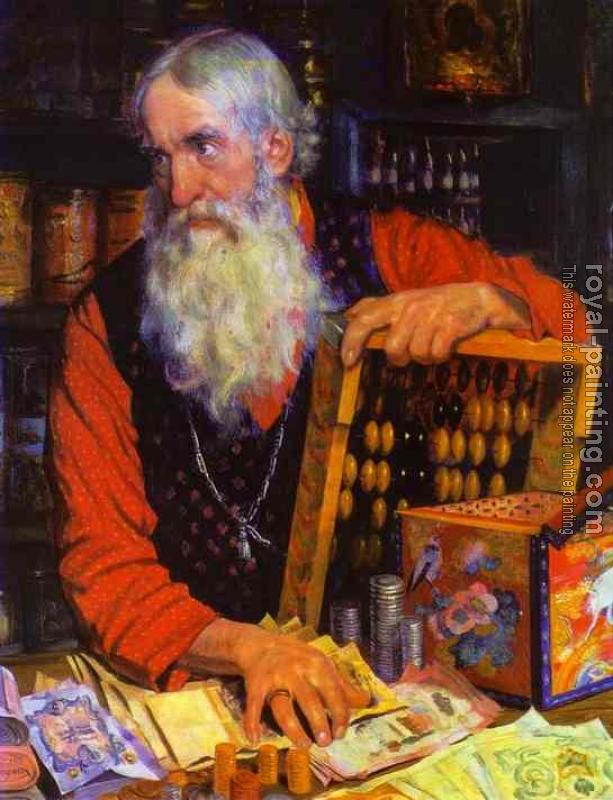 * Hand-painted Boris Kustodiev Oil Painting Reproduction : Merchant