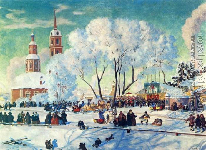 * Hand-painted Boris Kustodiev Oil Painting Reproduction : Pancake Tuesday, Maslenitza