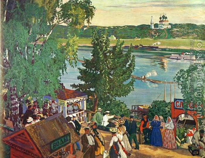 * Hand-painted Boris Kustodiev Oil Painting Reproduction : Promenade Along the Volga