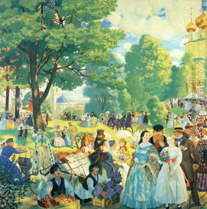 * Hand-painted Boris Kustodiev Oil Painting Reproduction : Trinity Day