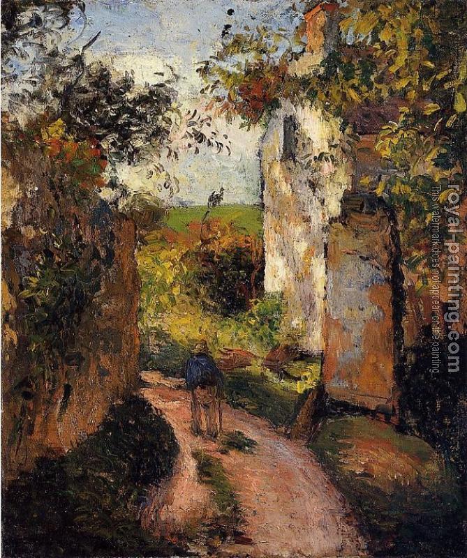 * Hand-painted Camille Pissarro Oil Painting Reproduction : A Peasant in the Lane at l'Hermitage, Pontoise