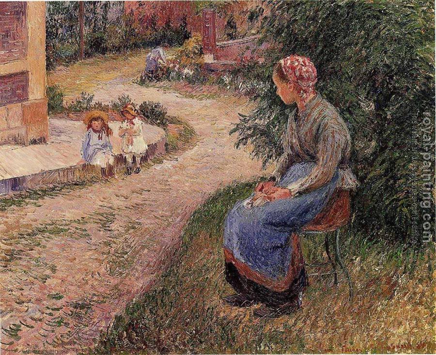 * Hand-painted Camille Pissarro Oil Painting Reproduction : A Servant Seated in the Garden at Eragny