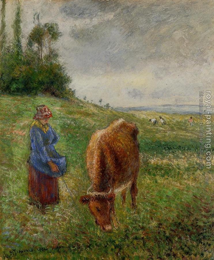 * Hand-painted Camille Pissarro Oil Painting Reproduction : Cowherd, Pontoise