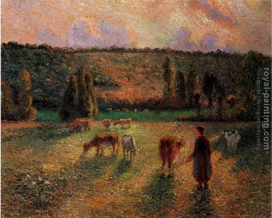 * Hand-painted Camille Pissarro Oil Painting Reproduction : Cowherd at Eragny