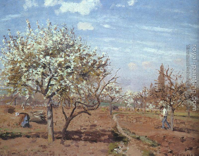 * Hand-painted Camille Pissarro Oil Painting Reproduction : Orchard in Bloom at Louveciennes