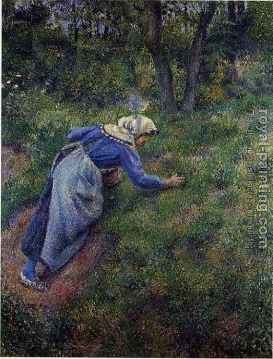 * Hand-painted Camille Pissarro Oil Painting Reproduction : Peasant Gathering Grass