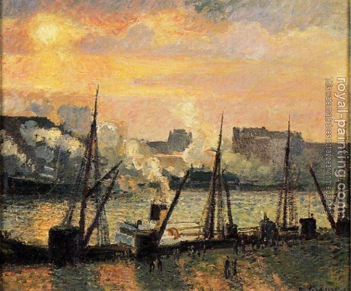 * Hand-painted Camille Pissarro Oil Painting Reproduction : Quay in Rouen, Sunset