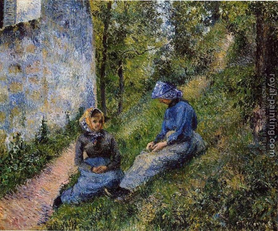 * Hand-painted Camille Pissarro Oil Painting Reproduction : Seated Peasants, Sewing