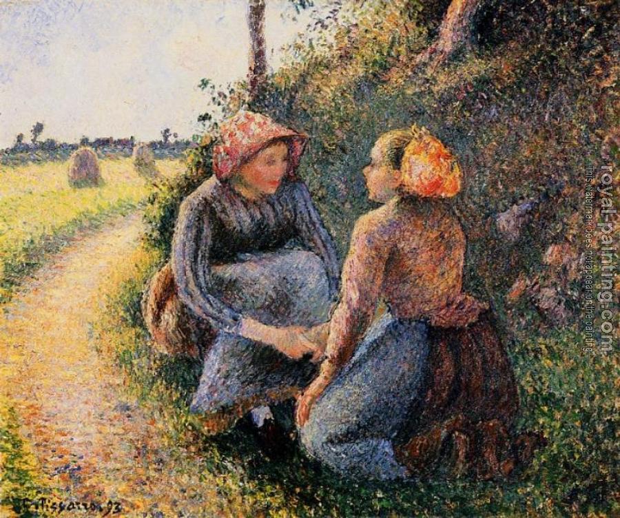 * Hand-painted Camille Pissarro Oil Painting Reproduction : Seated and Kneeling Peasants