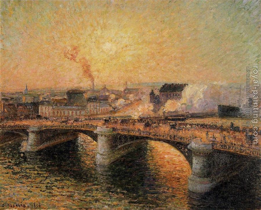 * Hand-painted Camille Pissarro Oil Painting Reproduction : The Boieldieu Bridge, Rouen, Sunset